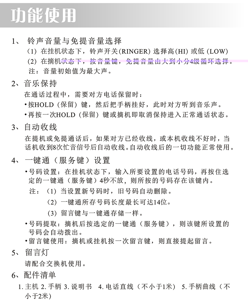 7、音乐保留(3级音量可调),并机取机自动解除保留